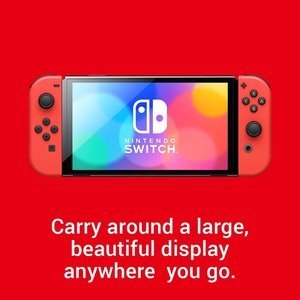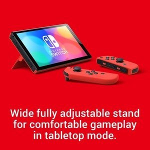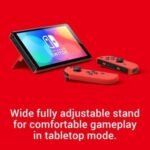 • Flip out the stand and hand a controller to another player to share the screen and enjoy competitive or co-operative multiplayer, anytime and anywhere. Nintendo Switch (OLED model)’s wide adjustable stand can be set to your preferred viewing angle for comfortable gameplay in tabletop mode