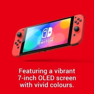 • Pick it up and play with the Joy-Con controllers attached. Nintendo Switch (OLED model) includes a vibrant 7-inch OLED screen with a slimmer bezel. The large screen’s vivid colours and high contrast deliver a rich handheld and tabletop gaming experience, bringing games to life whether you’re racing at top speed or squaring off against enemies.