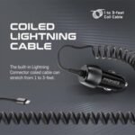 - 🚗 Coiled charging cable: The built-in Lightning charging cable is coiled, so it won’t get tangled or cluttered in your car. The coiled design also allows for easy and convenient storage.